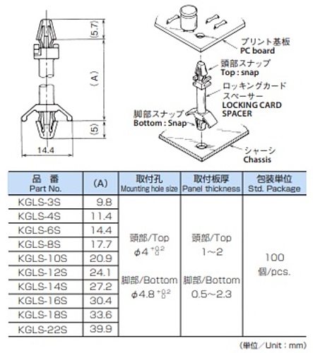 基板とシャーシを固定・スペーシングする2つの機能を備えています。【材料】ナイロン66(色調:ナチュラル)UL94V-2※写真はイメージです。※RoHS対応状況:製品ごとに異なりますのでメーカーホームページより御確認ください。※在庫がない場合別途納期がかかる場合がございますので、ご了承願います。