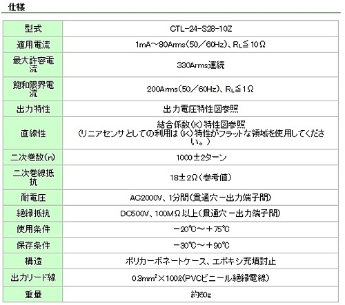 〔特 長〕・貫通穴径φ24の大口径、精密計測用の標準センサ。・高透磁率パーマロイコアの採用で、1mA ~ 80Aのワイドレンジをカバー。・1000:1の高変流比で、二次電流が小さく直接電子回路へのインターフェースが可能。・出力リード線は、ビニール線(0.3m㎡×100L)。・パネル取付用には、別売取付金具(HLD-24)が用意されています。