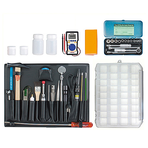 【特長】●保守、点検サービス用の工具セット。●ケースは1.0mmのアルミ製。●コーナー部をアルミサッシと金具で強化。●内装はメルトン仕上げ。【用途】●工場等での保守、点検に。【仕様】●セット点数:61●外寸:L455×W330×H176mm●内寸:L440×W315×H168mm●重量:12kg【セット内容】●NN-46/斜ニッパー(穴付)●NS-03/マイクロニッパー●PA-01/コードプライヤー●PC-06/コンビネーションプライヤー●PD-06/電工ペンチ●PR-46/ラジオペンチ●PS-01/ミニチュアラジオペンチ●PW-10/ウォーターポンププライヤー●PH-03/ロックホルダー●PH-33/キンキリ鋏●PT-01/ピンセット●DA-02/調整ドライバー(-2.0×0.5mm)●DM-22/精密ドライバー(+No.000)●DM-23/精密ドライバー(+No.00)●DM-33/精密ドライバー(-1.8×0.3mm)●DM-34/精密ドライバー(-2.3×0.35mm)●DN-02/ナットドライバー(対辺4.0mm)●DN-04/ナットドライバー(対辺5.0mm)●DN-05/ナットドライバー(対辺5.5mm)●DN-07/ナットドライバー(対辺7.0mm)●DN-08/ナットドライバー(対辺8.0mm)●DR-04/ラチェットドライバーセット(10本組)●DR-54/プチラチェ●DR-55/オフセットラチェットセット(薄型)●DG-05/差替クッションドライバー●DG-12/ロンググリップドライバー(+No.2)●DS-03/ドライバー(+No.00)●DS-13/ドライバー(-2.6×0.35mm)●DS-24/ドライバー(+No.0)●DS-34/ドライバー(-4.0×0.5mm)●DS-44/ドライバー(+No.1)●DS-64/ドライバー(+No.2)●TP-35/マグピック●TWH-01/六角レンチセット(7本組)●TWM-02/モンキーレンチ●TS-04/ミニスパナセット(8本組)●TWS-02/ソケットレンチセット(16点セット)●先細ハンマー●平ブラシ●TFS-02/ヤスリセット(5本組)●TR-03/リーマー●TZ-02/ハンディ鋸●SD-10/マルチメーター●SKC-40/セラミックハンダコテ(32W)●SW-31/糸ハンダ●SS-02/ハンダ吸取器●SWU-04/半田吸取線●SS-05/コテクリーナー●SS-08/IC抜き●SL-02R/検査鏡●ペンライト●SS-21/スプリングフック●SS-22/スプリングフック●KP-03K/パーツケース●巻尺(2m)●カッター●ビニールテープ●オイラー●ポリビン(100cc)×2ヶ●ポリビン(30cc)×2ヶ●シリコンクロス※写真はイメージです。※在庫切れの場合は別途御相談させて頂きます。※RoHS証明は間接材としての使用に限ります。(証明対象は製品又は部品のみで包装材・ケース等は含みません)※RoHS対応状況:製品ごとに異なりますのでメーカーホームページより御確認ください。