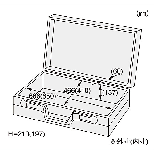 【特長】●アルマイト処理を施した1.5mmのアルミ製。●コーナー部をアルミサッシと金具で強化。●内装はメルトン仕上げ。●キャスターを標準装備。【用途】●各種工具、機器の収納、持ち運びに。【仕様】●外寸:L666×W466×H210mm●内寸:L650×W450×H197mm●重量:7.4kg●キャスターサイズ:φ30mm●付属品:カギ(2個)※写真はイメージです。※在庫切れの場合は別途御相談させて頂きます。※RoHS証明は間接材としての使用に限ります。(証明対象は製品又は部品のみで包装材・ケース等は含みません)※RoHS対応状況:製品ごとに異なりますのでメーカーホームページより御確認ください。