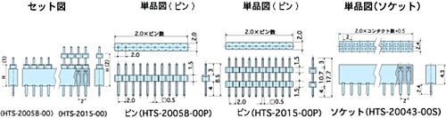 廣杉計器 段重ね端子(抜差型) ピン(角ピン) 2.00mmピッチ ストレート(1列) HTS-20058-13P