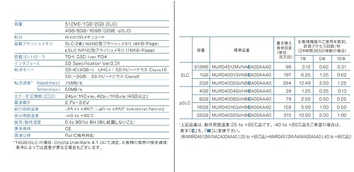 4. 42bit/1KByte ECC搭載(4GB~)。24bit/1KByte ECC搭載(~2GB)。