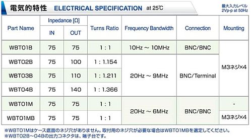 ビデオトランス  WBTシリーズ 映像信号のみ対応