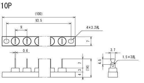 ■定格:125V-3A ■絶縁抵抗:DC500V、100MΩ以上 ■耐電圧:AC1000V(1分間) ■極数(P):10 ■主絶縁材:フェノール(UL94V-0) ■端子金具:ラグ端子 ■本体色:B(黒) ■取付方式:ネジ止め
